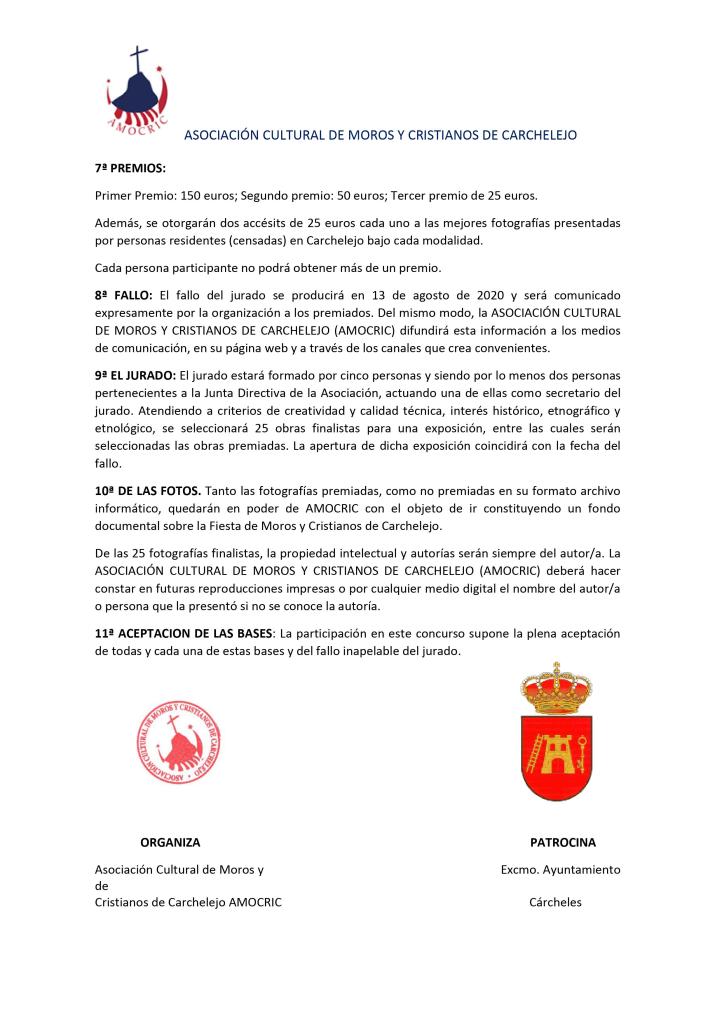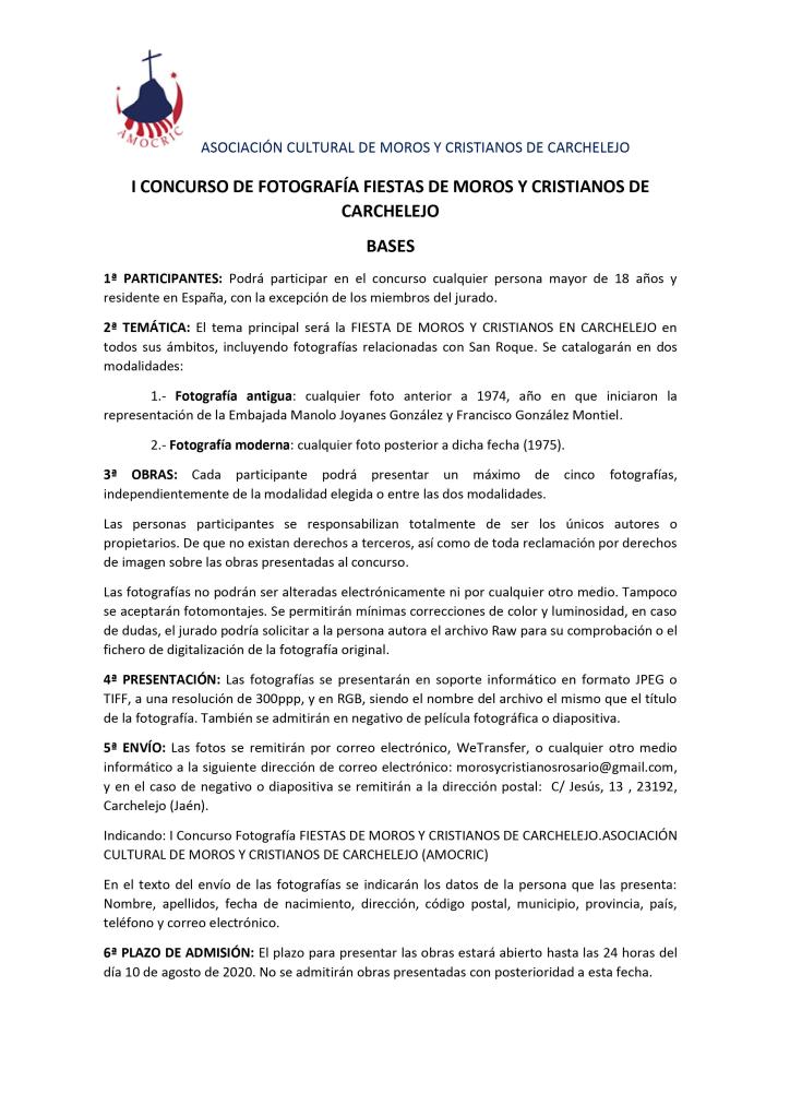 BASES I CONCURSO DE FOTOGRAFÍA FIESTAS DE MOROS Y CRISTIANOS DE CARCHELEJO 22 julio, 202022 julio, 2020amocric Compártelo: Compartir en X (Se abre en una ventana nueva) X Compartir en Facebook (Se abre en una ventana nueva) Facebook Me gusta Cargando... Relacionado